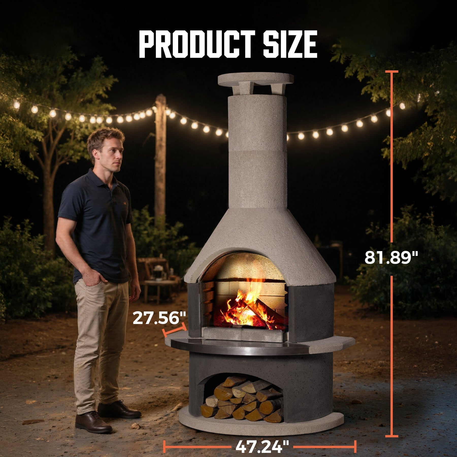 Concrete Outdoor Fireplace with Grill (81.9") is a backyard centerpiece that combines a fire feature with a practical grilling area. Perfect for outdoor cooking, warmth, and a more “built-in” look for patios and garden spaces.